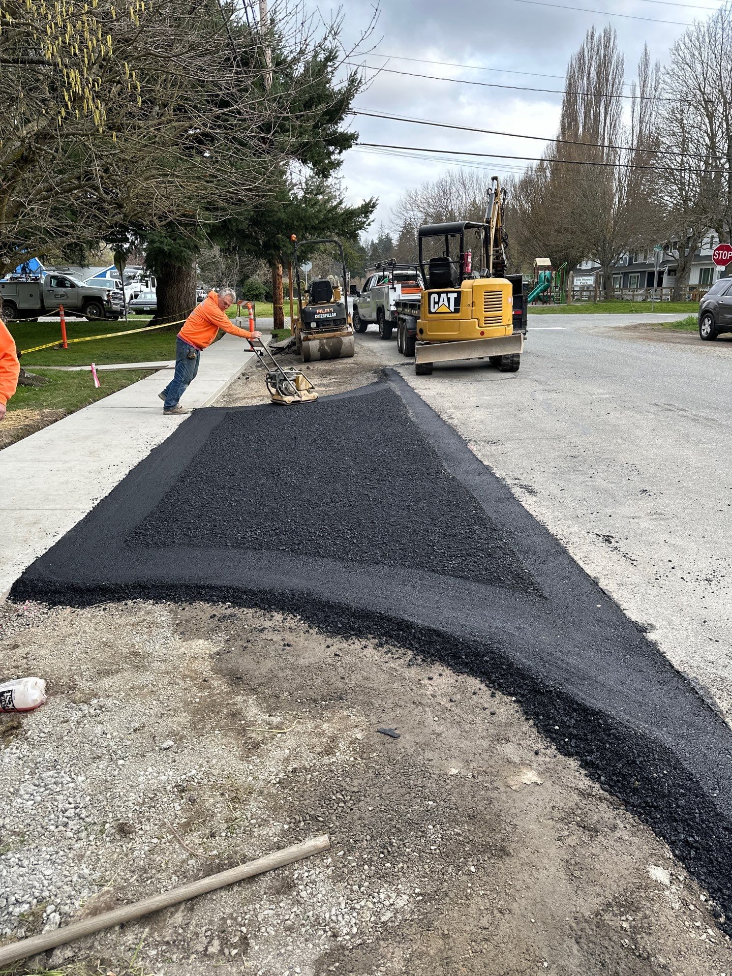 The project consisted of the demolition and disposal after saw cutting existing asphalt and concrete, site grading and compacting 1,400 square feet including importing CSTC 4'’ to regrade driveway, install 140 LF of 6'’ PVC, connecting to an existing 8'’ sewer main, install 70 LF of 4'’ PVC, connecting to new 6'’ PVC, install concrete curb and gutter, pour concrete sidewalk and driveway, and pave asphalt from sewer install, curb line and driveway. In addition to this scope, our team provided traffic control as needed during the duration of the project.